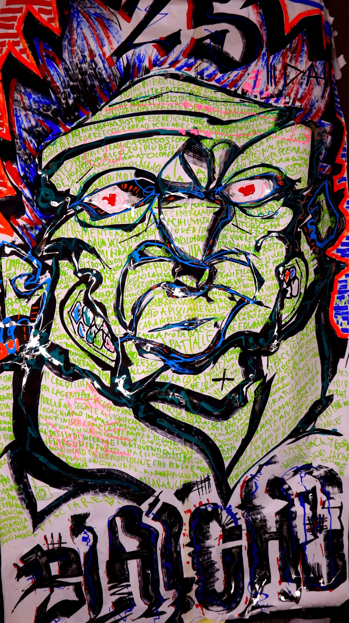 The process stayed faithful to the original instinct of Faccio Facce. I used the same old 5 cm Molotow marker to build the lines of the face quickly, in flow, without hesitation. But here the works evolved into something more layered.