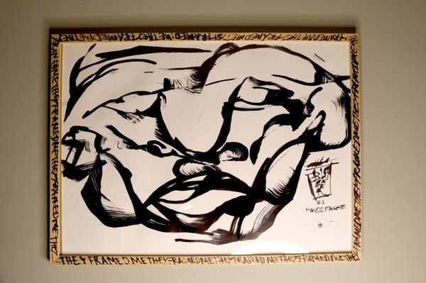 What began as spontaneous marks on found paper will eventually become a moving, human sculpture of faces.