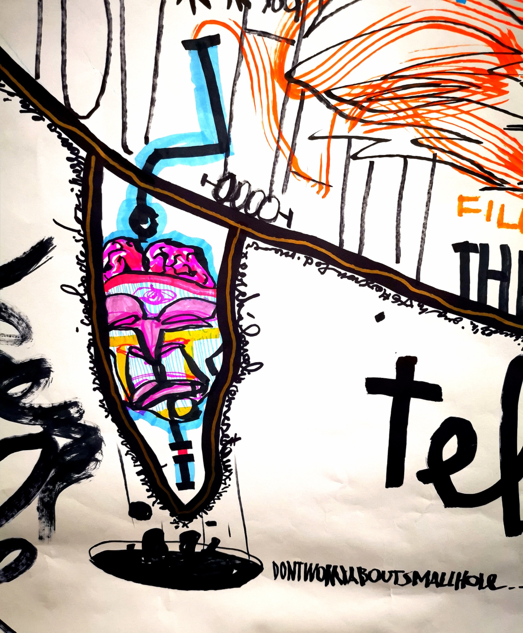 That is why TELETEUB is not just a large drawing or an absurd character. It is a time container. A surface where experiences, encounters, memories, and wounds kept depositing themselves until the whole thing became dense with meaning. Its scale matters because the piece had to be able to hold all of that. It had to become gigantic in order to contain the weight of a year.