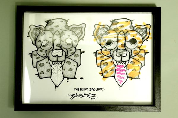 This is one of my favourite designs. I created these bad boys after becoming fascinated with the word mydriasis, and during a period when I was deeply inspired by South American civilizations and by the symbolic force of the jaguar. While drawing jaguar heads, I ended up creating two MK23 jaguars: one more altered and vibrant, the other darker, black and white, and seemingly blind. Together they became The Blind Jaguar.